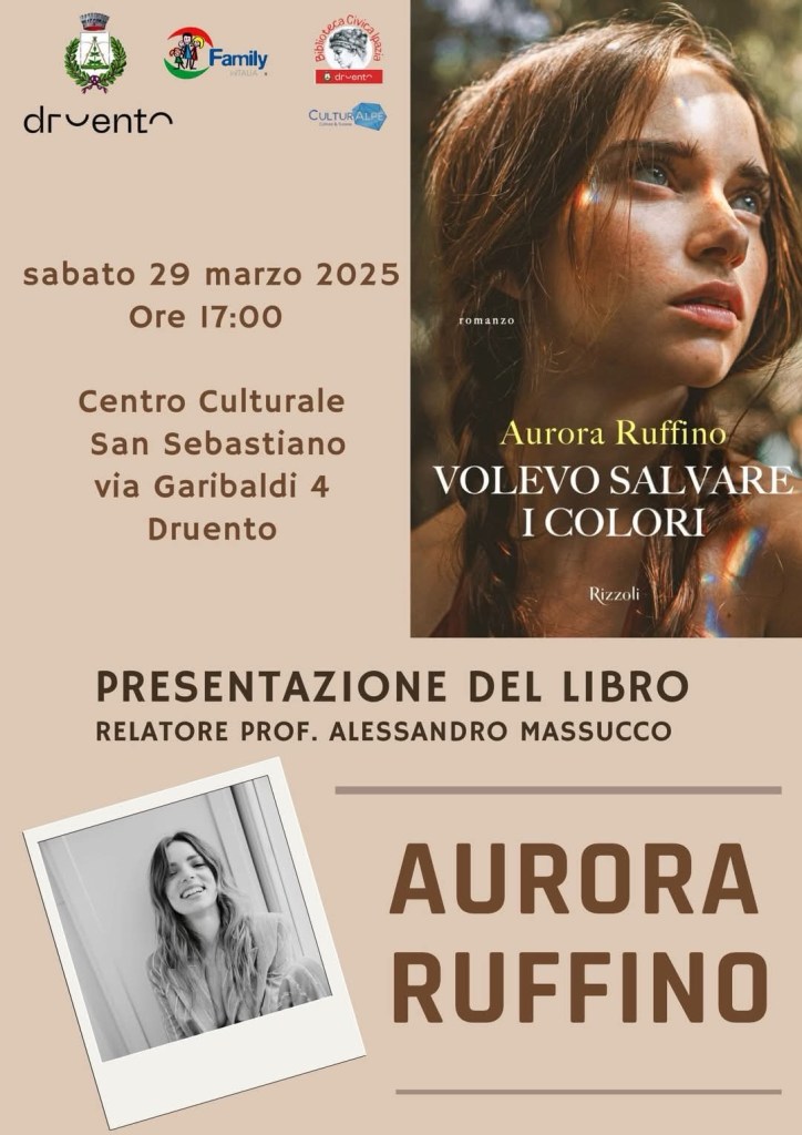 Sabato 29 marzo 2025 alle ore 17.00 presso il Centro Culturale San Sebastiano avremo ospite la nostra concittadina Aurora Ruffino che ci presenterà il suo bellissimo romanzo