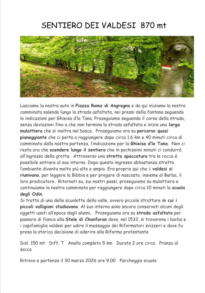 Cari amici, il docente di escursionismo ci ha proposto un’uscita molto interessante nella valle dei Valdesi.