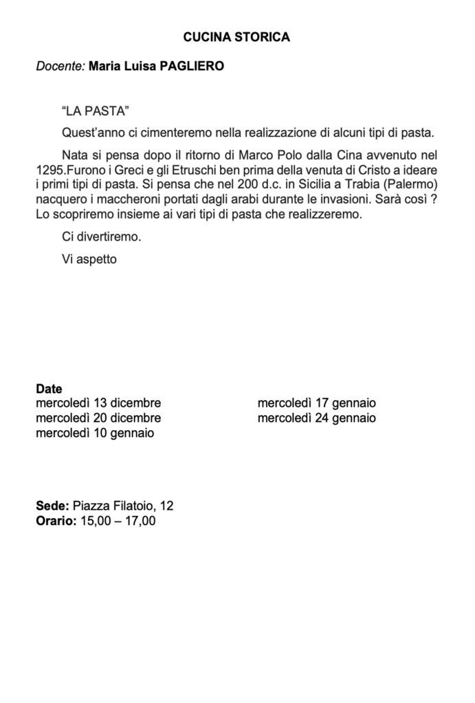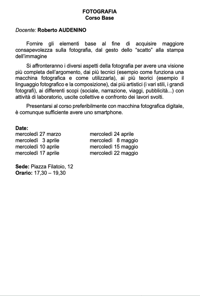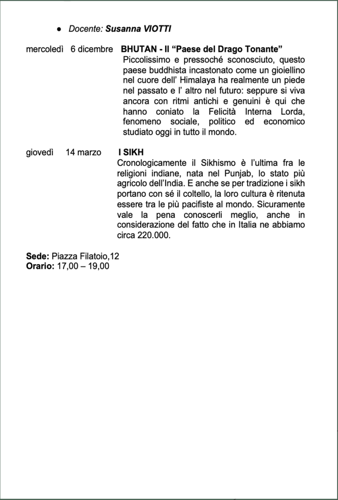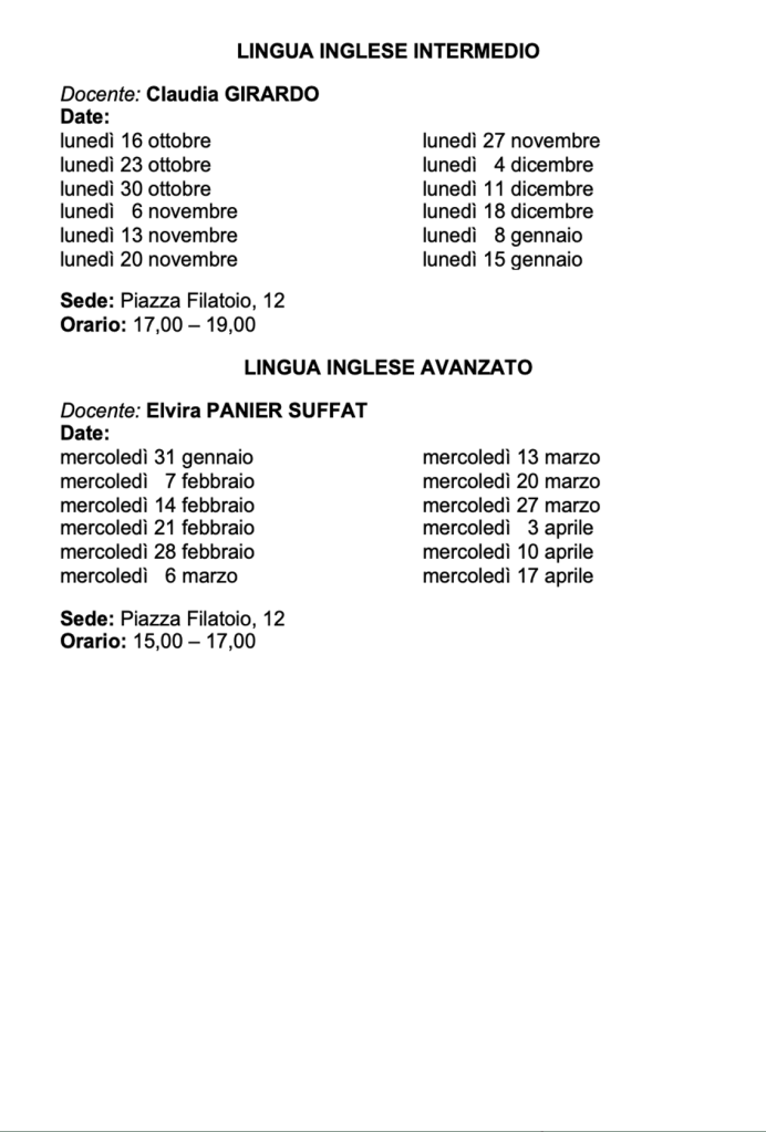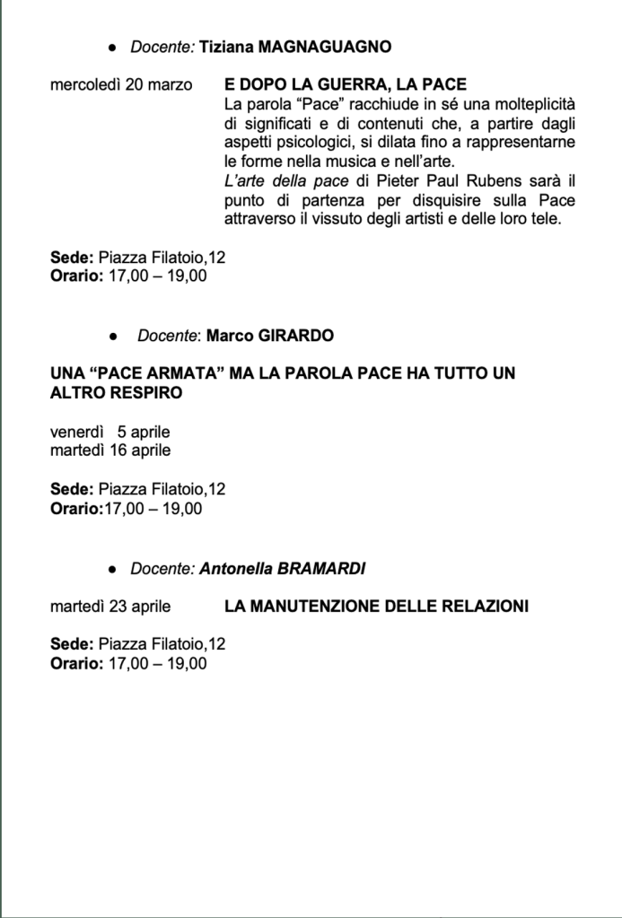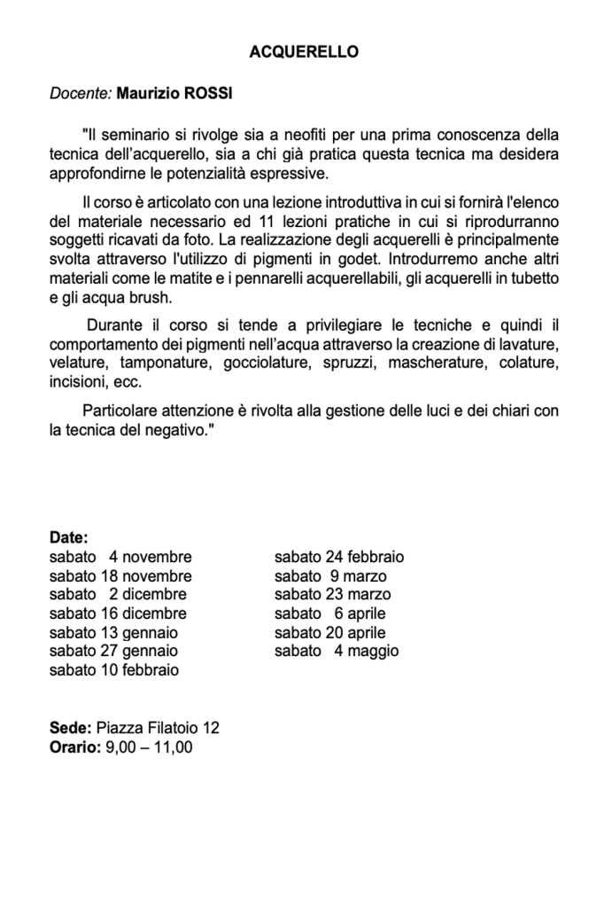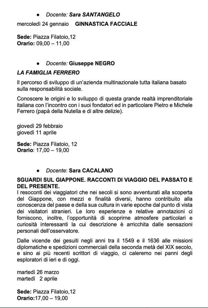 Vi invitiamo a verificare sempre sul nostro sito o sulla pagina Facebook e sulla vostra mail eventuali cambi di date e sedi.