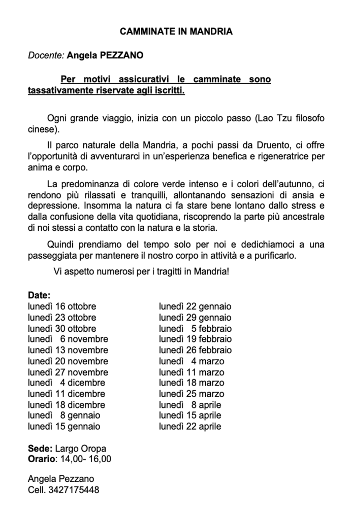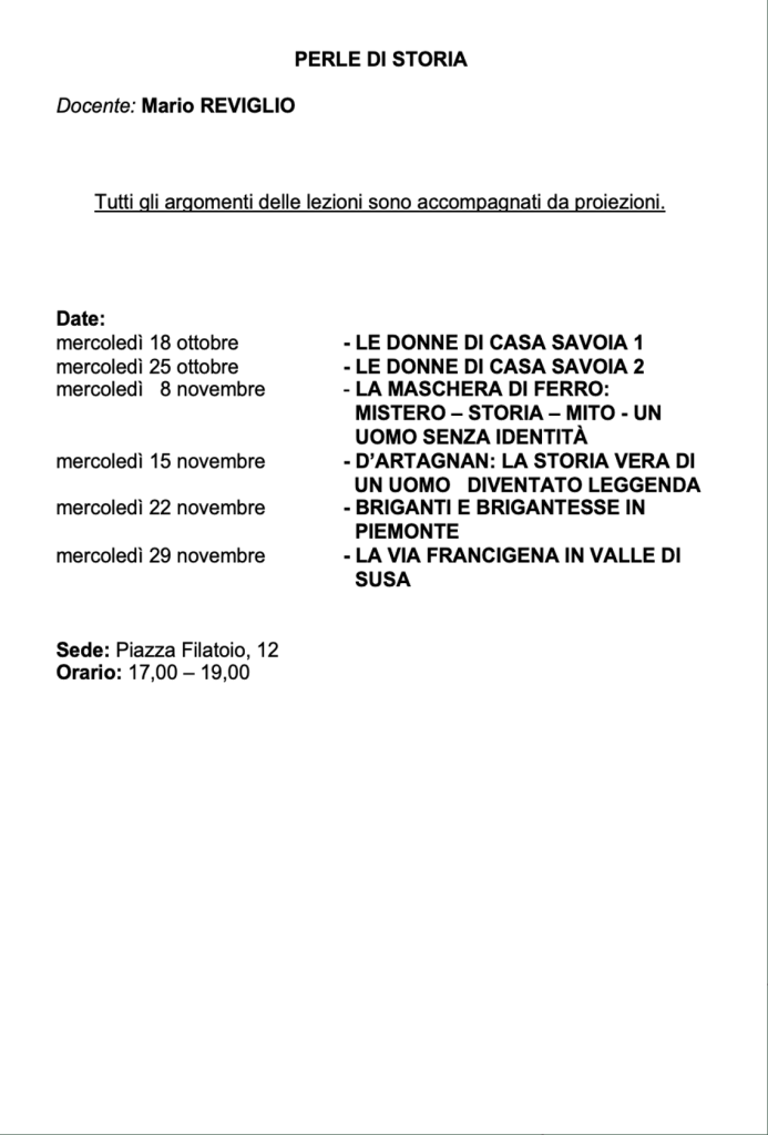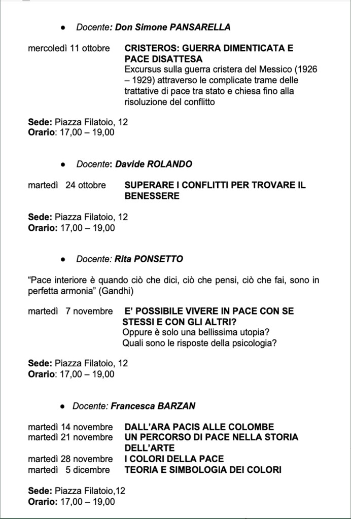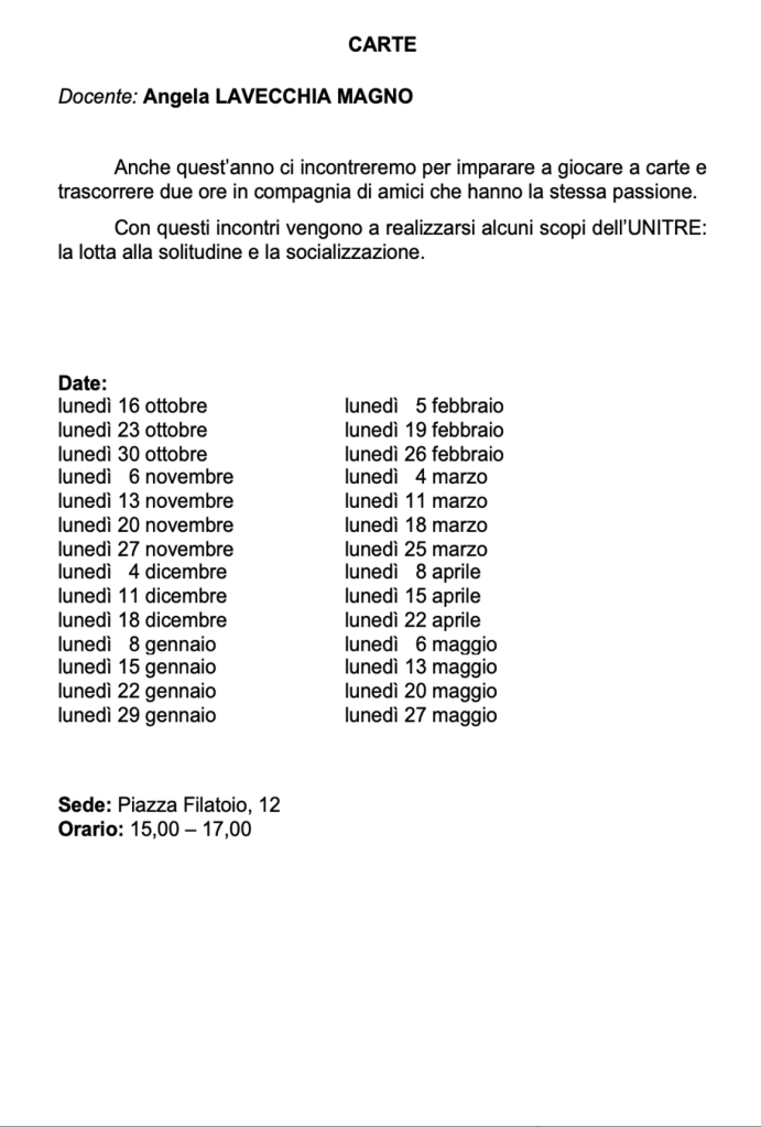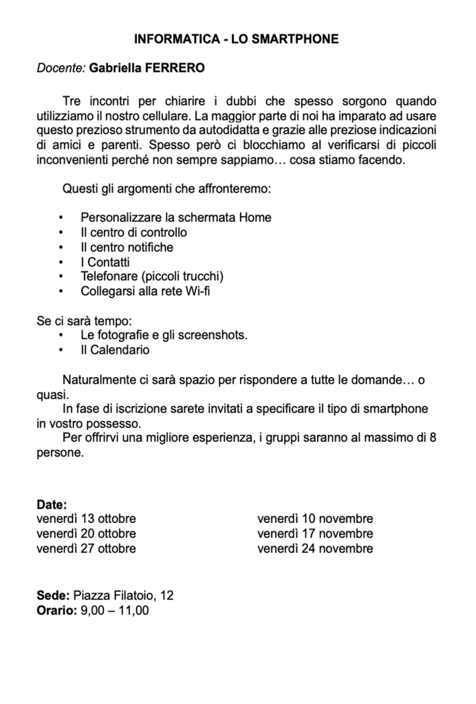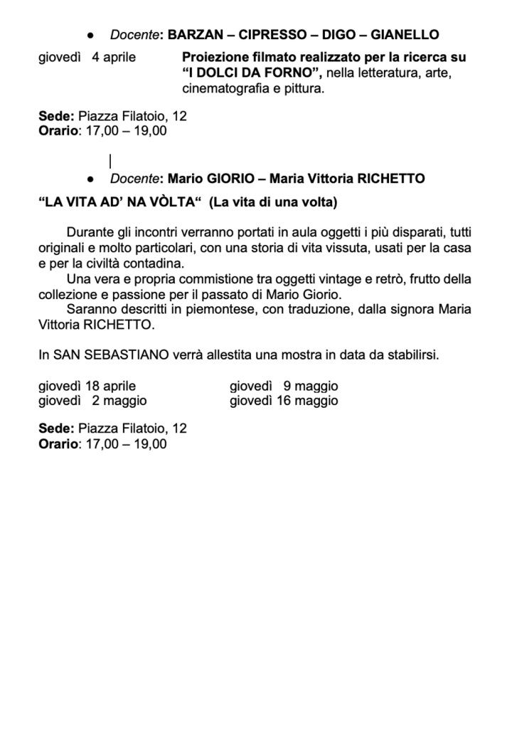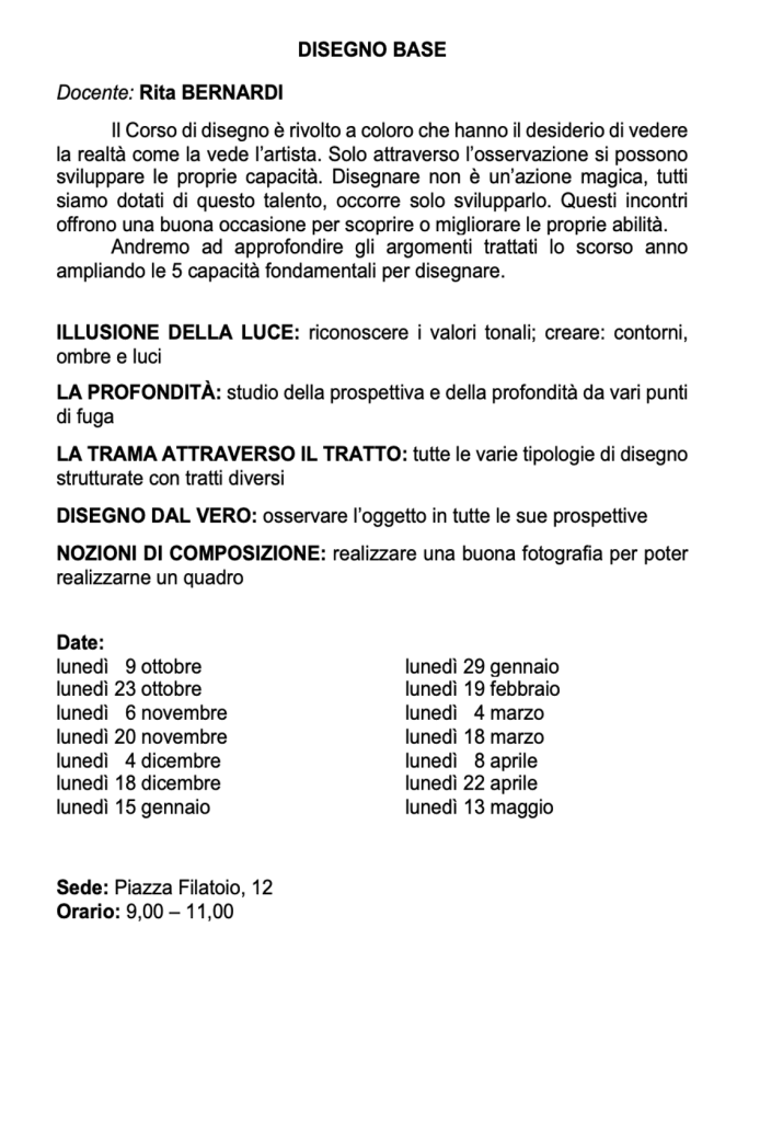 Vi invitiamo a verificare sempre sul nostro sito o sulla pagina Facebook e sulla vostra mail eventuali cambi di date e sedi.