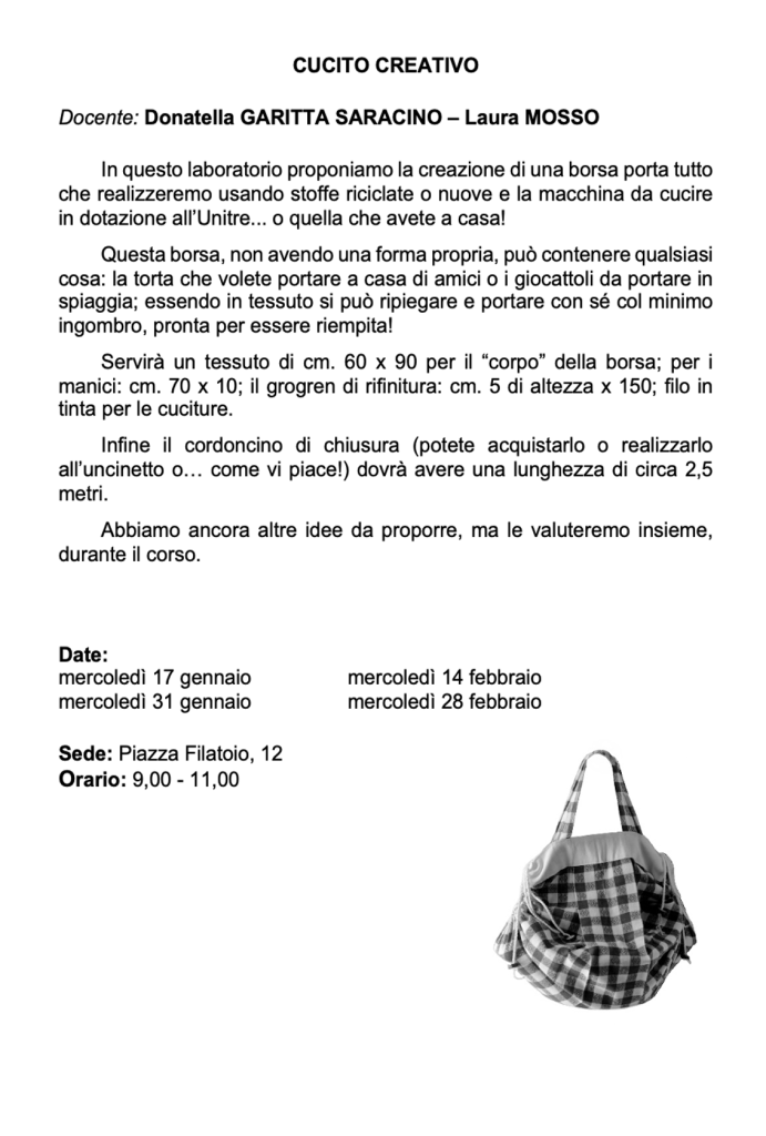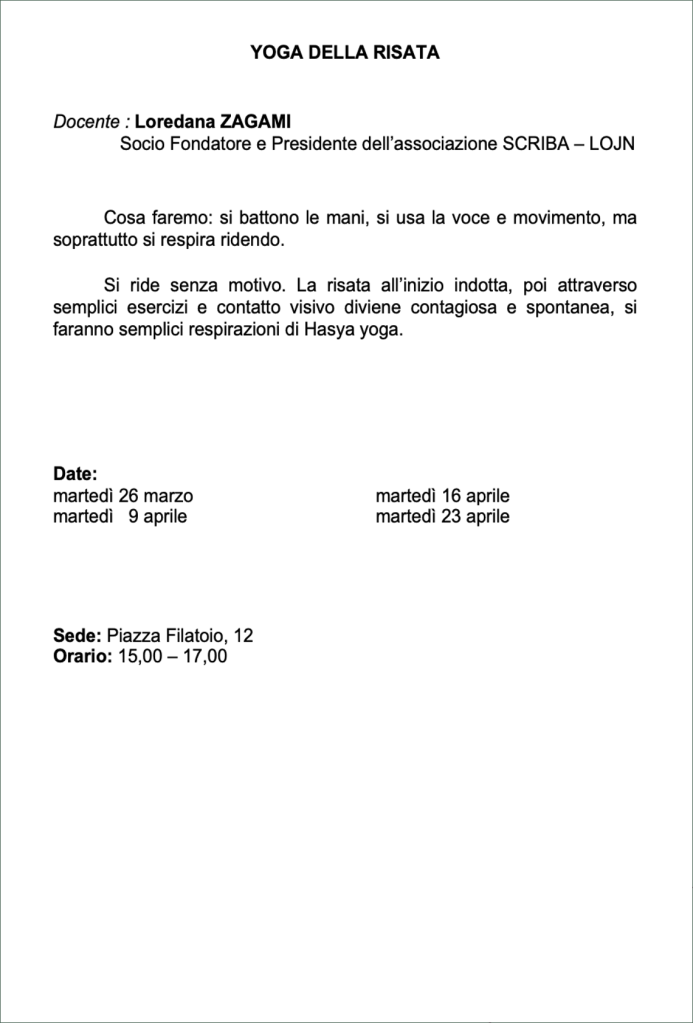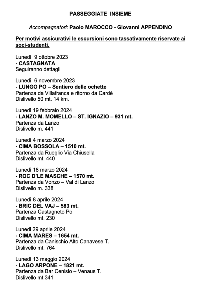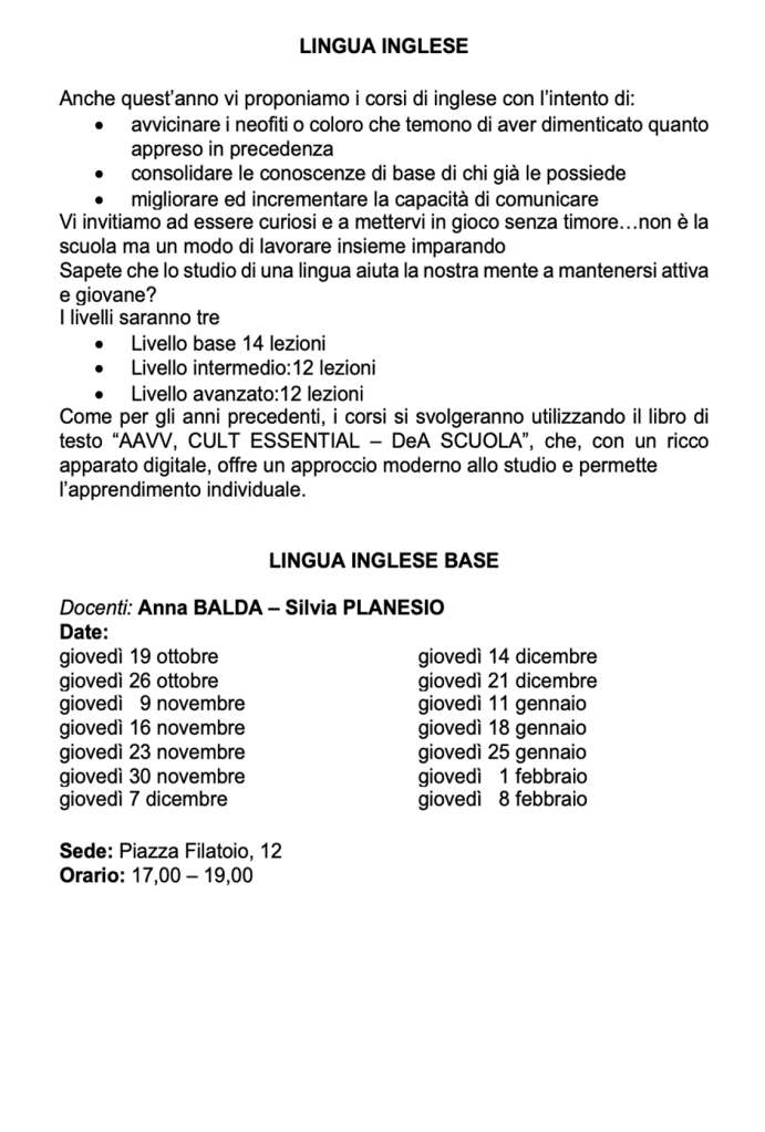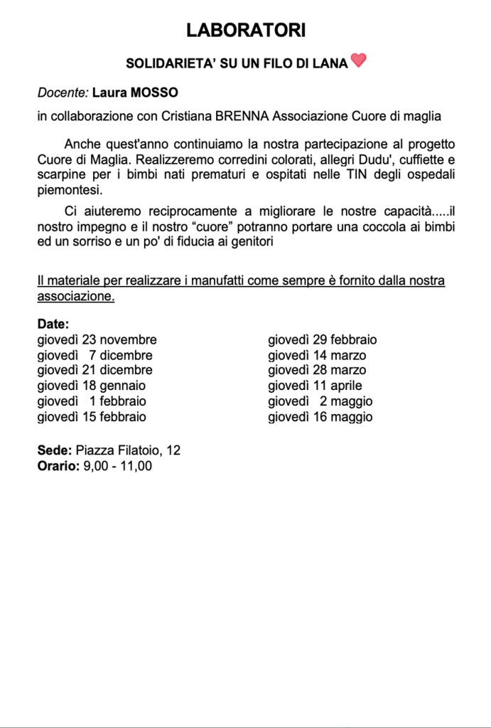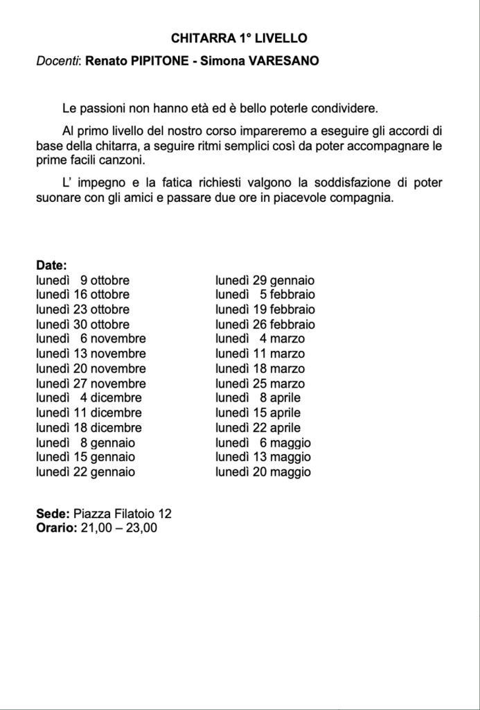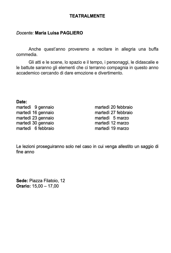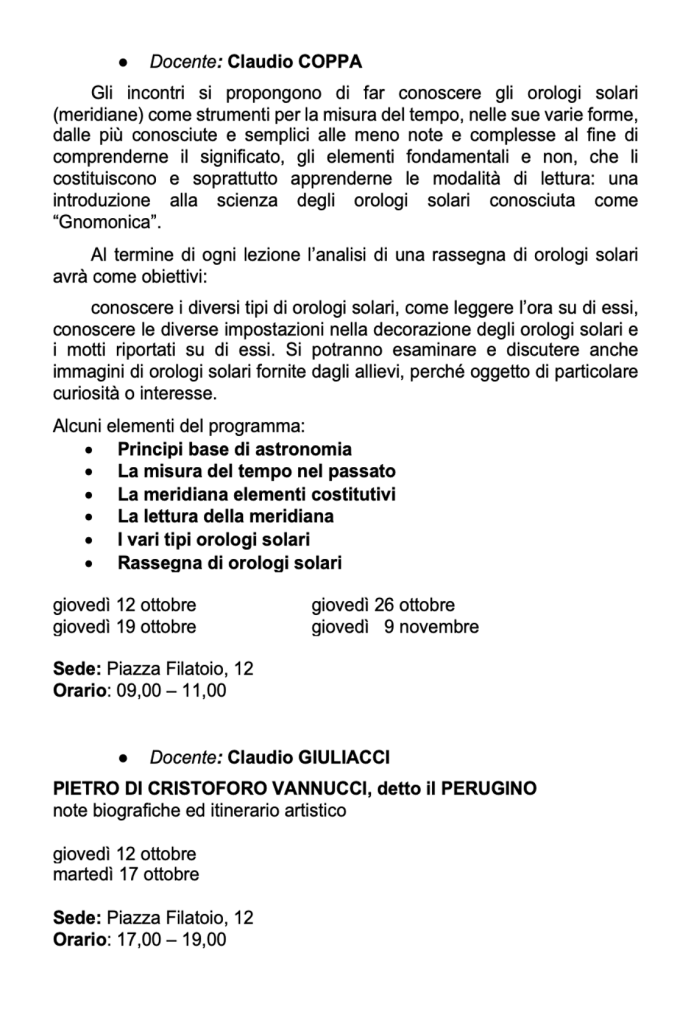 Vi invitiamo a verificare sempre sul nostro sito o sulla pagina Facebook e sulla vostra mail eventuali cambi di date e sedi.