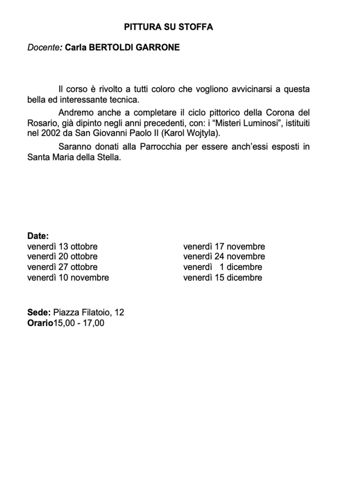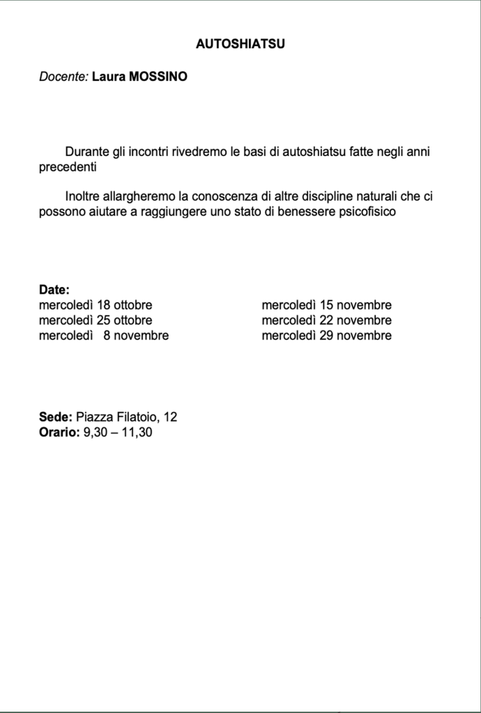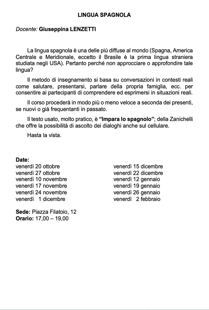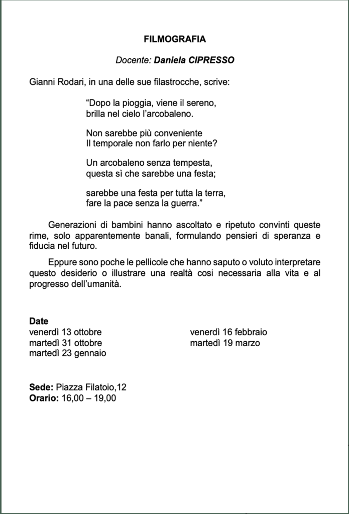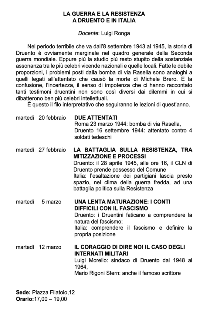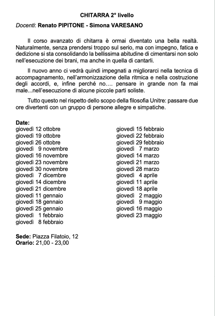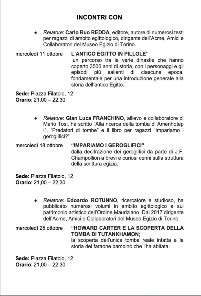 Vi invitiamo a verificare sempre sul nostro sito o sulla pagina Facebook e sulla vostra mail eventuali cambi di date e sedi.