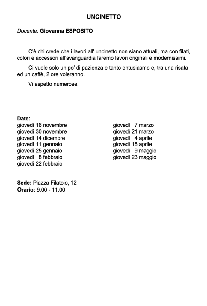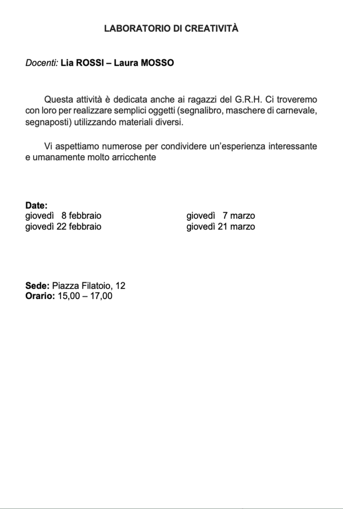 Clicca sulle frecce laterali per sfogliare la presentazione dei nostri Corsi e Laboratori